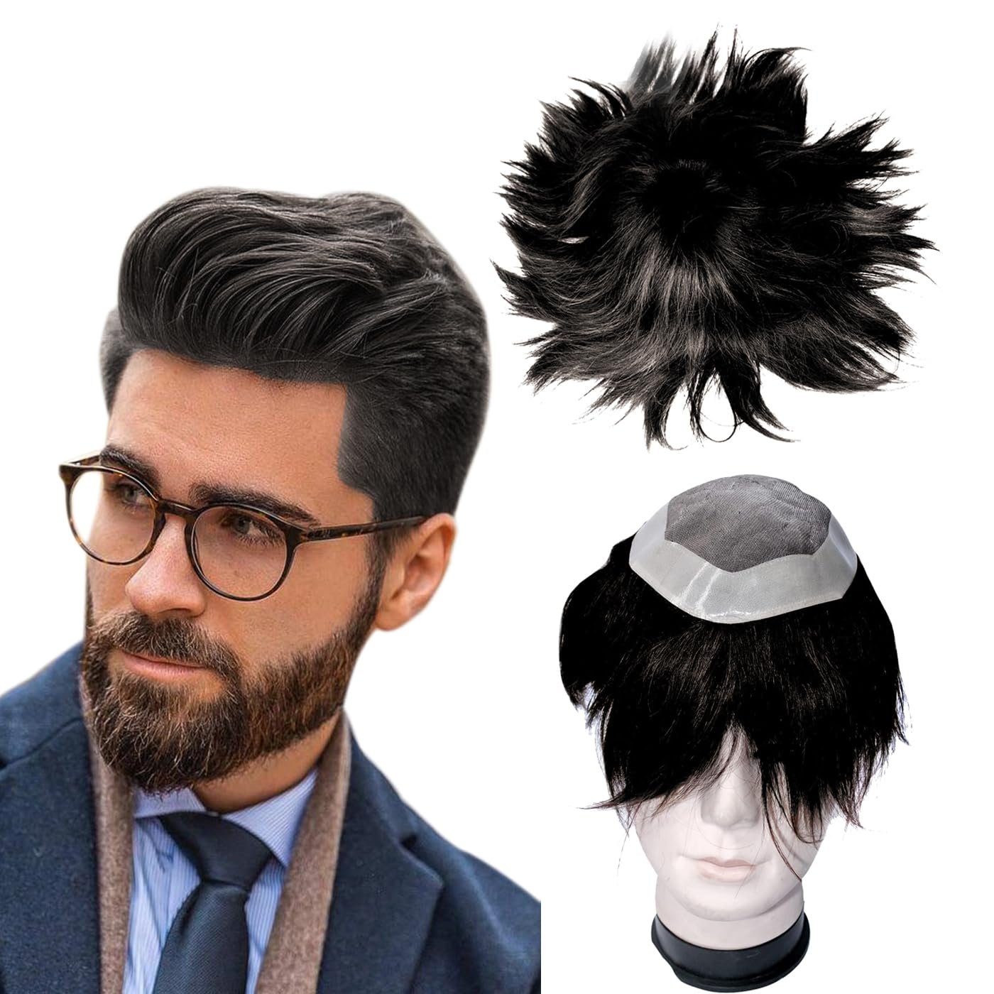 EKO Hair Patch for Men 100% Human Hair Wigs for Men | Full Head Toupee for Men | Easy to Wear Men’s Toupee | Non Surgical Hair Loss Solution Fix with Men’s Hair Toupee Tape/Glue